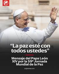 Que este sea un fruto del Jubileo de la Esperanza, que ha impulsado a millones de seres humanos a redescubrirse peregrinos y a comenzar en sí mismos ese desarme del corazón, de la mente y de la vida al que Dios no tardará en responder cumpliendo sus promesas: «Él será juez entre las naciones y árbitro de pueblos numerosos. Con sus espadas forjarán arados y podaderas con sus lanzas. No levantará la espada una nación contra otra ni se adiestrarán más para la guerra. ¡Ven, casa de Jacob, y caminemos a la luz del Señor!» (Is 2,4-5).
